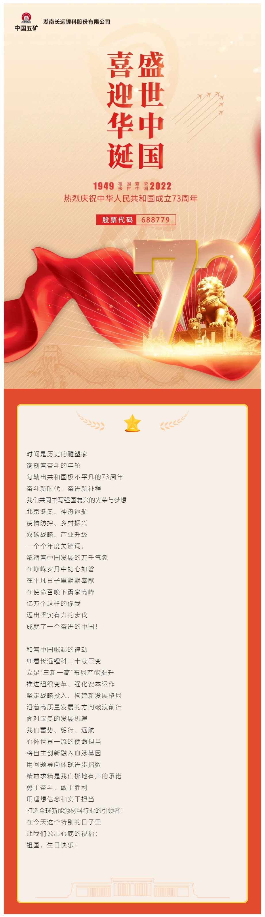 长远锂科热烈庆祝中华人民共和国成立73周年
