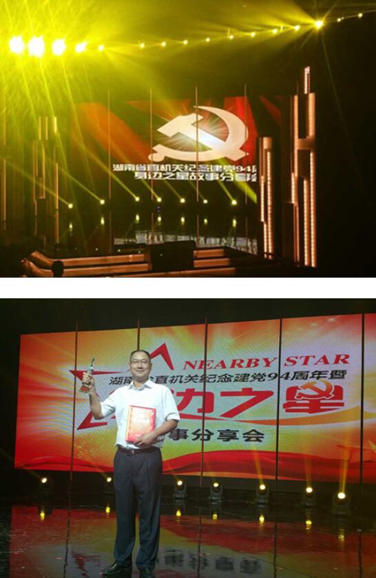 6月30日下午,胡柳泉与此次获表彰的50位“身边之星”一道参加了在湖南广播电视台演播厅举行的湖南省直机关工委纪念建党94周年暨“身边之星”故事分享会,领取了奖杯和证书。