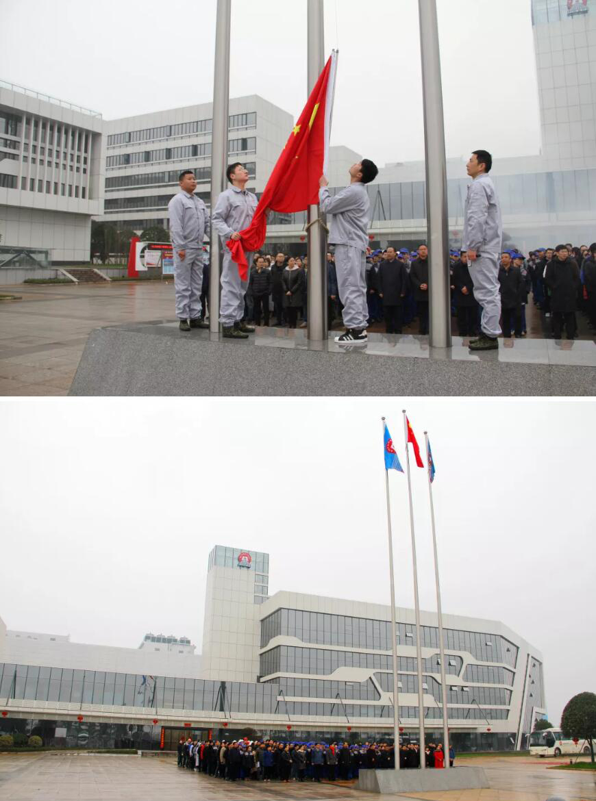 新春佳节后开工上班第一天,湖南长远锂科有限公司举行隆重的升旗仪式,三百余名员工集合在国旗下开启了新的征程。