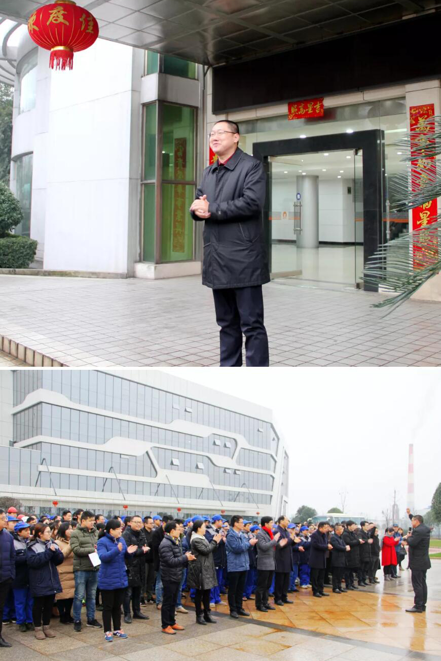 升旗仪式结束之后,公司临时党委书记、执行董事、总经理胡柳泉代表班子向全体员工进行新春慰问并致辞,恭祝大家新年快乐,开工大吉!希望全体员工在新的一年,发扬“一天也不耽误,一天也不懈怠”的精神,撸起袖子加油干!