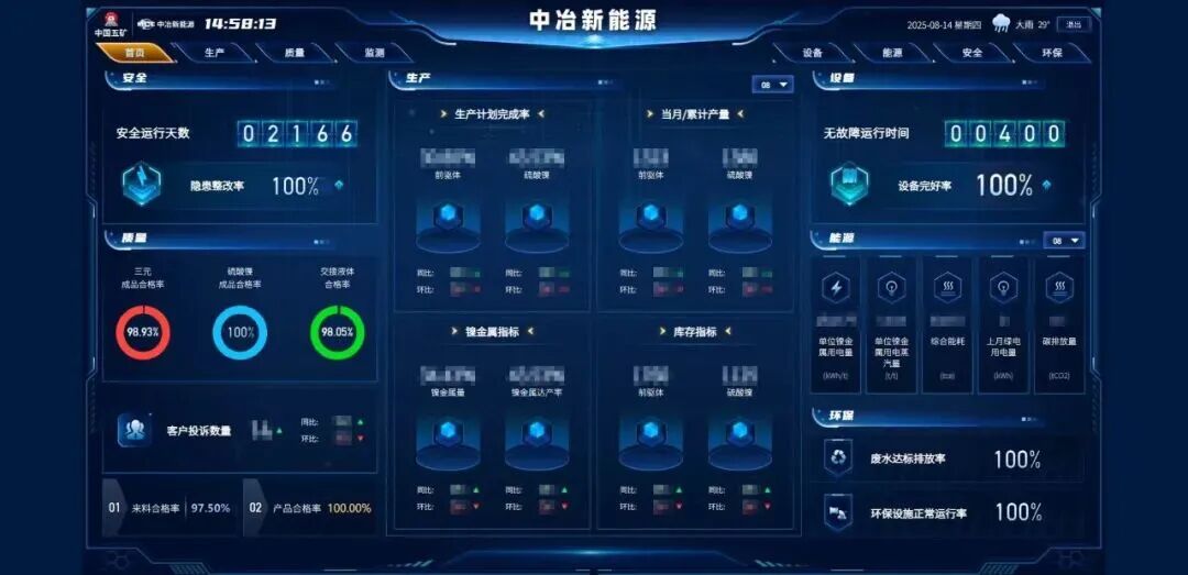 中冶新能源承载着将中国五矿海外矿产资源深加工为国内新能源材料的初心使命,是国内首创红土镍矿到三元前驱体全链条生产的企业,也是京津冀地区唯一的三元前驱体生产和三元电池黑粉综合利用企业。“十四五”期间,公司坚持业务、管理“专精特新”发展战略,始终以“科技+智造”为核心引擎,逐步实现三元前驱体从5、6系中镍到8、9系高镍、超高镍的产品型号跨越;氧化钪纯度从98%到99.99%的技术突破;硫酸镍从工业级到电池级再到电镀级的质量提升;电池回收锂收率从85%到95%的工艺革新。